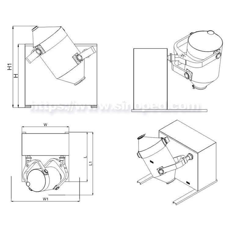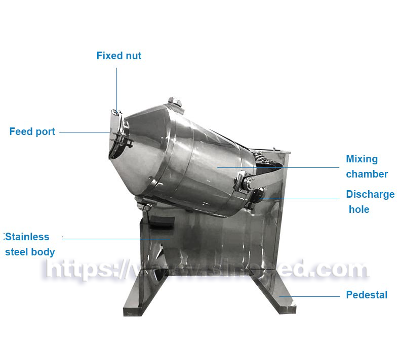 Is cineál nua de threalamh meascáin é meascthóir 3D, is é a phrionsabal an rothlú seafta bíseach a úsáid chun fórsa lártheifeacha a ghiniúint, ionas go n-ardóidh an t-ábhar ar feadh an bhalla groove bíseach faoi ghníomh fórsa lártheifeacha agus scaipthe go cothrom chuig gach coimeádán. Tá meascthóir 3D oiriúnach chun éagsúlacht ábhar púdar a mheascadhialacha i dtionscail cheimiceacha, bia, leighis, lotnaidicídí agus eile.